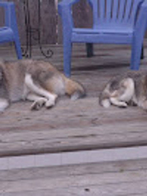 Max and Stimpy sunning themselves on the deck at Tybee. Max is our 18-month Alaskan Malamute and was given to us by Patricia Z. an amazing massage therapist friend of ours.